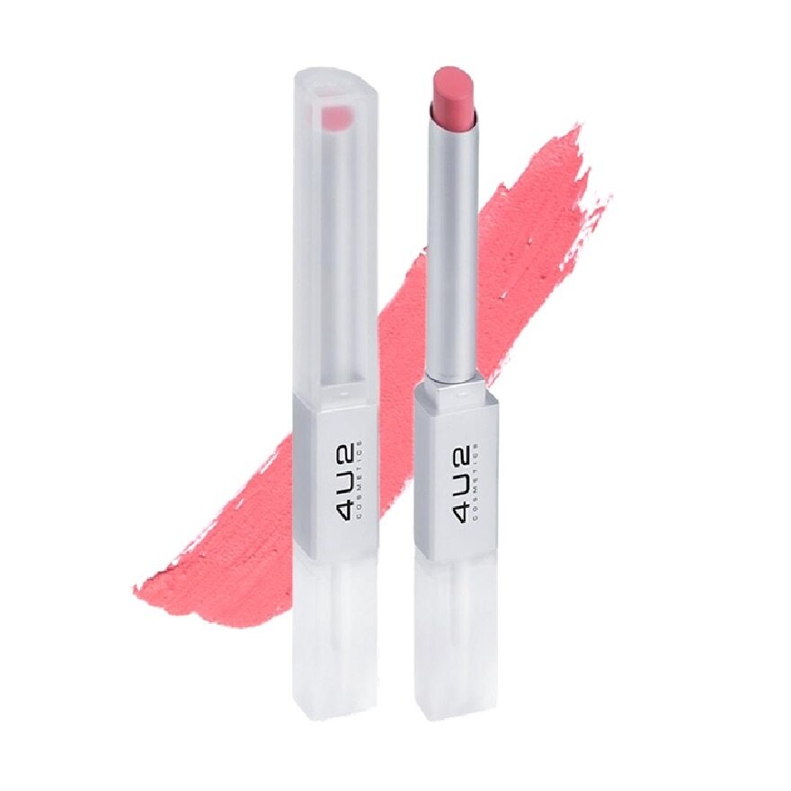 4U2 Better Half Duo Lip 2-in-1 Lipstick combines matte lipstick with lip gloss in one convenient product The lipstick offers a smooth lightweight and pigmented formula. As for the clear lip gloss it delivers high shine and seals in the lipstick's colorThe result is a comfortable all-day wear that doesn't budge throughout the day. Rich pigments combines a polymer film to provide a lightweight texture with crispconsistent and long lasting color on the lips. Quick drying Not faded during the day.