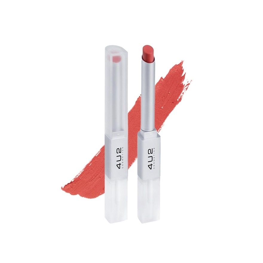 4U2 Better Half Duo Lip 2-in-1 Lipstick combines matte lipstick with lip gloss in one convenient product The lipstick offers a smooth lightweight and pigmented formula. As for the clear lip gloss it delivers high shine and seals in the lipstick's colorThe result is a comfortable all-day wear that doesn't budge throughout the day. Rich pigments combines a polymer film to provide a lightweight texture with crispconsistent and long lasting color on the lips. Quick drying Not faded during the day.