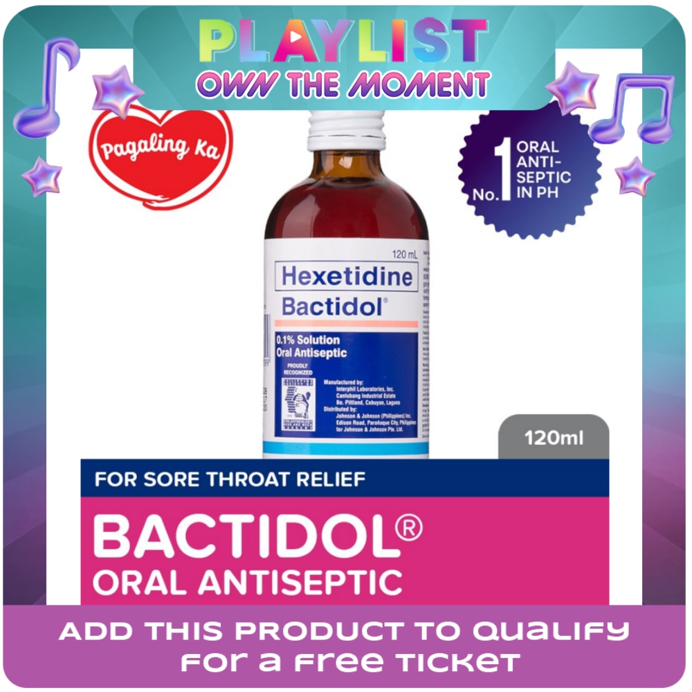 Each 100 mL of Bactidol contains Hexetidine 100 mg and alcohol 9%.