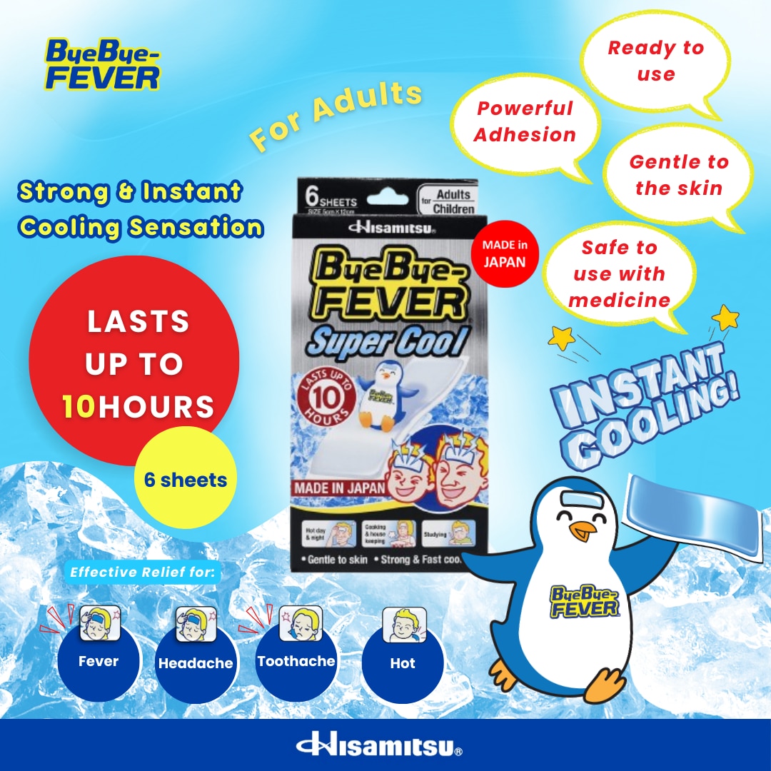 Bye Bye Fever Cooling Gel Sheets is used for fver, headache, toothache, or hot days. It also has instant cooling sensation that soothes fever discomfort.