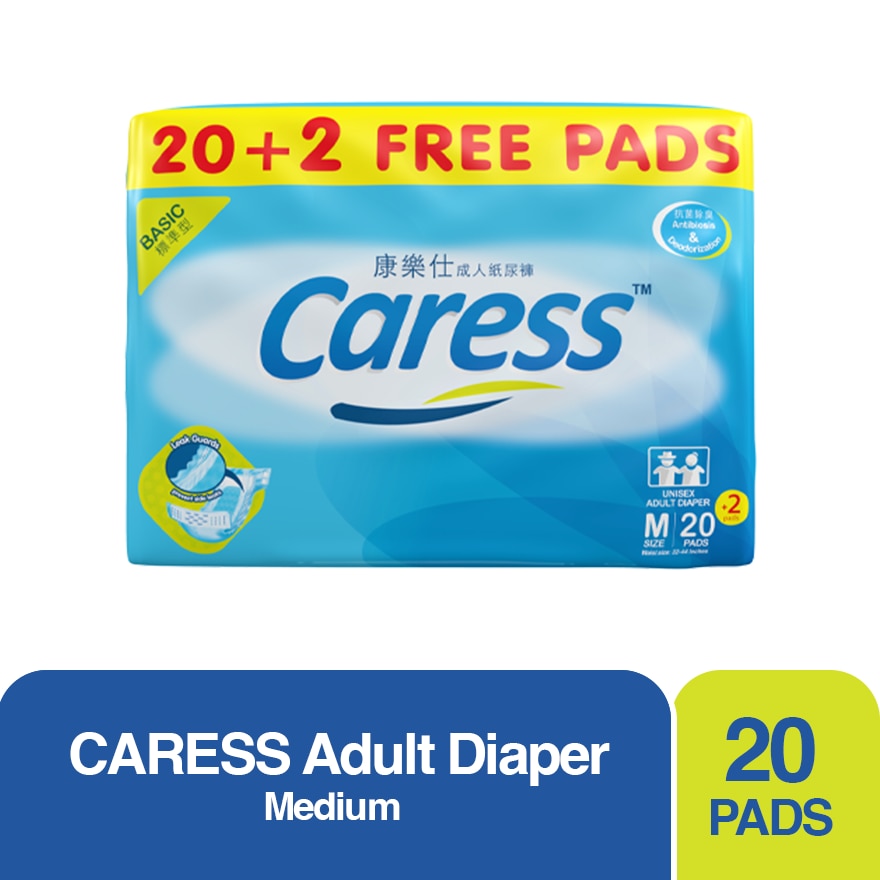 CARESS Basic Adult Diaper Medium 20s + 2 Free Pads
