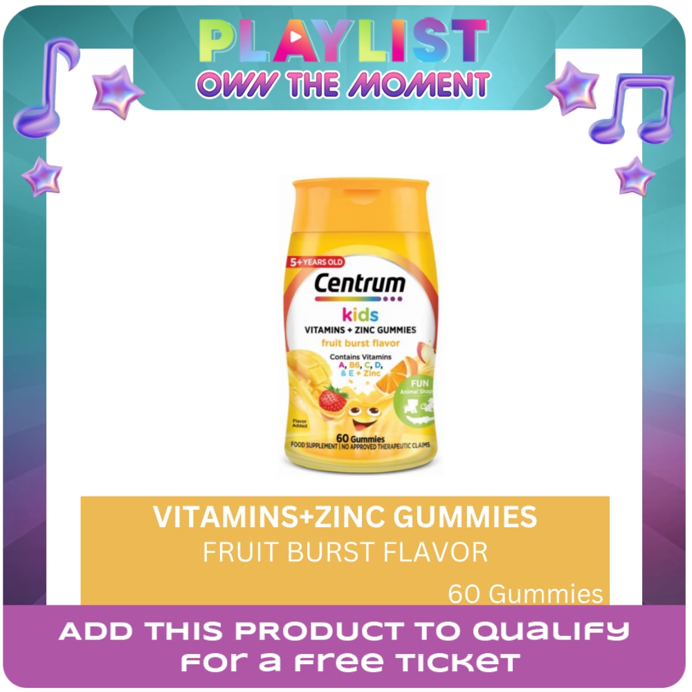 'Centrum Kids Vitamins + Zinc Gummies Apple Fruit Bursts 60s Contains Vitamins A, B6, C,D & E + Zinc