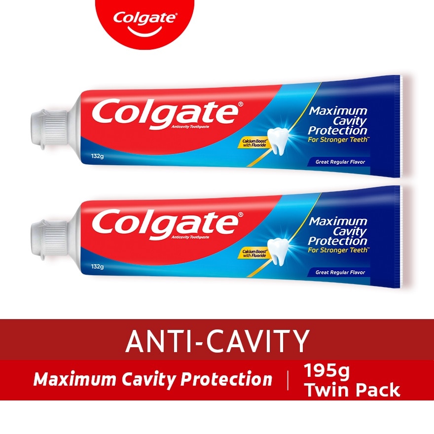 Maximum Cavity Protection Great Regular Flavor Anti-Cavity Family Toothpaste 195g Twin Pack