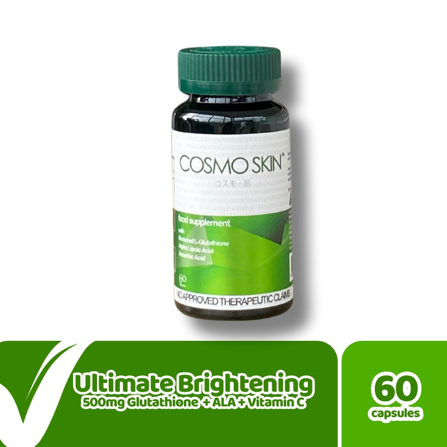 Cosmo Skin is the countrys prime whiteningÿsupplement. ÿIts uniqueÿformulation inhibits tyrosinaseÿactivity that is a main component of dark melaninÿthe main culprit for skin darkening. ÿ ÿ Cosmo Skin is formulated with Advanced Skin Whitening Technology that contains a more potent form of 500 mg Glutathione 100 mg AlphaLipoic Acid and 100mg Vitamin C. ÿ ÿ Aside from giving you a fair and smooth skin Cosmo Skin can also helps strengthen the immune system it can protectÿthe body from freeradical damage and it can remove the toxins in the liver. ÿ ÿ ÿÿ It also has amino acids that helpÿenhance the skins naturalÿÿcollagen levels thusÿreducing the appearance ofÿÿwrinkles and signs of skin aging. ÿ