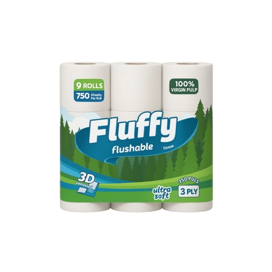 FLUFFY Ultra Soft Flushable Bathroom Tissue 3 Ply x 9