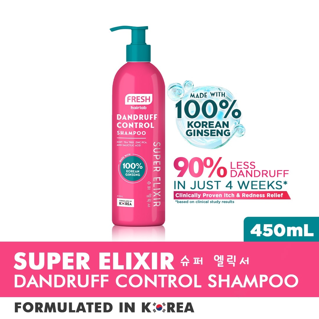 Cleanse and refresh your scalp with the cooling Super Elixir shampoo packed with power actives of Mint, Tea Tree, Zinc PCA, Salicylic Acid, and 100% Korean Ginseng that help control dandruff, minimize sebum and gently exfoliate and soothe your scalp, leaving your hair healthy with a lasting shine from root to tips.