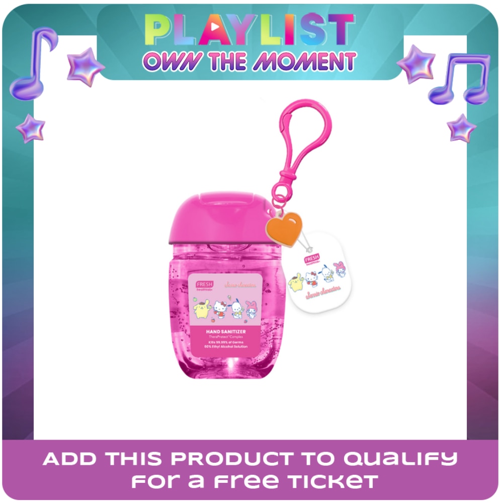 Fresh with Sanrio Characters Hand Sanitizer 30mL Get 99.99 percent instant germ free protection and live up to the Kawaii Vibes with Fresh Sanrio Gel Sanitizers that leaves a sweet whimsical fruity floral scent with every use