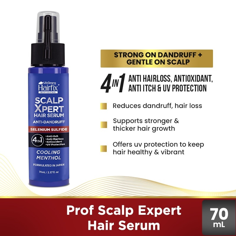 Lifestrong Hairfix Professional ScalpXpert Hair Serum is a specialized formula powered by Selenium and variety of ingredients in just one drop. It's a special hair serum with antioxidants which deeply nourishes your scalp and hair. It effectively reduces dandruff, hair loss and supports stronger and thicker hair growth. Plus, it offers UV protection to keep your hair healthy and vibrant every day.