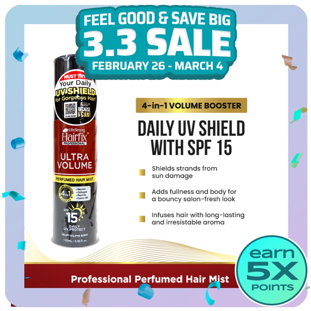 Step into the sun with confidence using Lifestrong Hairfix Professional Perfumed Ultra Volume Hair Mist. This innovative hair spray not only protects your tresses from harmful UV rays but also adds luscious volume and an enchanting fragrance.
