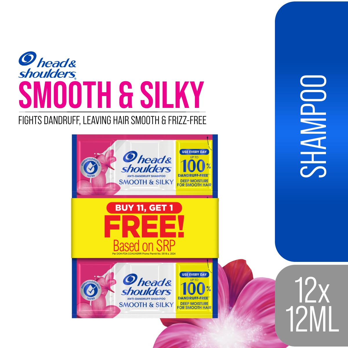 HEAD N SHOULDERS HEAD N SHOULDERS Shampoo Smooth & Silky Anti Dandruff Shampoo 11 Plus 1 12ml