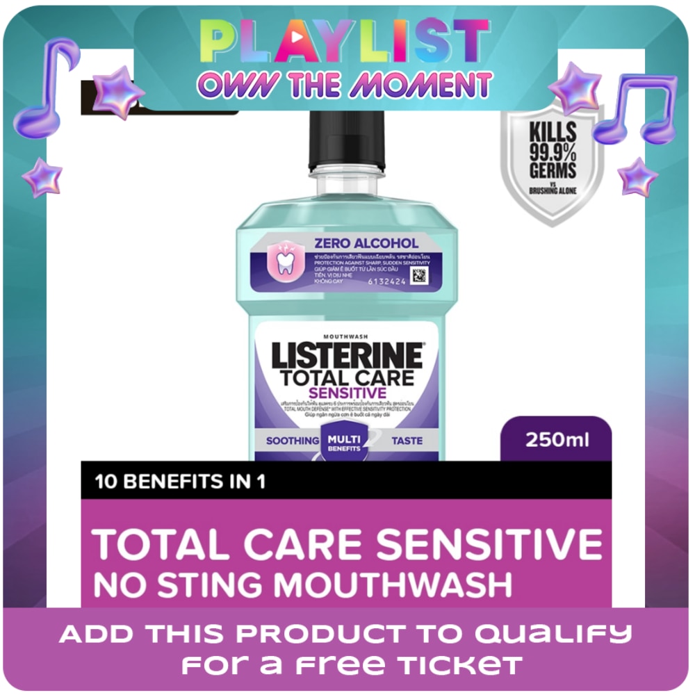 LISTERINE? Total Care Sensitive is proven to provide 10-in-1 benefits. For Total oral care! The ZERO-ALCOHOL formula helps provide all-round protection from sensitivity. Just 30 seconds of rinsing, twice a day.