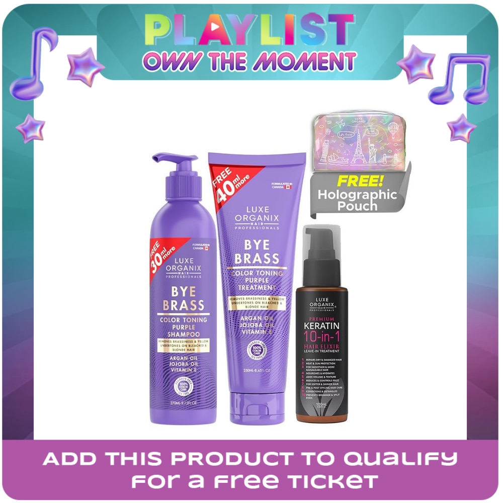 Luxe Organix Bye Brass Purple Shampoo 270 ml removes brassiness and yellow undertones. This product is perfect for maintaining color-treated blonde, platinum or highlighted hair for a natural salon look! Luxe Organix Bye Brass Purple Conditioner removes brassiness and yellow undertones. A color enhancing treatment is perfect for restoring and managing color-treated blonde, platinum, or highlighted hair for natural salon look! Luxe Organix Keratin 10-in-1 leave in treatment is made with Premium Keratin to repair, protect, and nourish hair. This can be used to style hair.