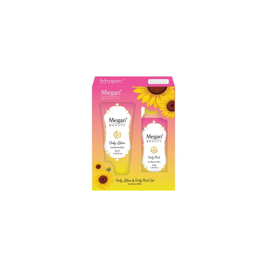 Let the enchanting fragrance of Megan Beauty Sunflower Bliss surround you. This luxurious set features a Perfume with a light and refreshing scent, paired with a Body Lotion that moisturizes your skin while leaving you delicately fragranced throughout the day.