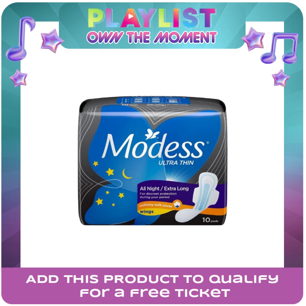 Modess All Night Ultra Thin Extra Long with Wings Sanitary Napkin 10s - Med-Heavy Flow,Thin Pad