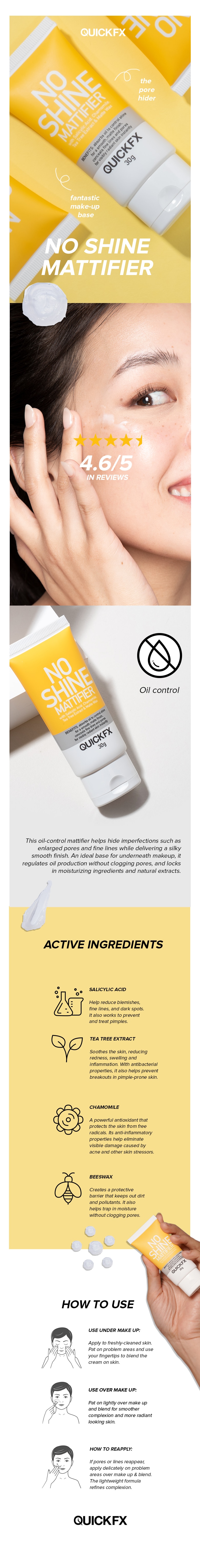 This oil-control mattifier helps hide imperfections such as enlarged pores and fine lines while delivering a silky smooth finish. An ideal base for underneath makeup, it regulates oil production without clogging pores, and locks in moisturizing ingredients and natural extracts.