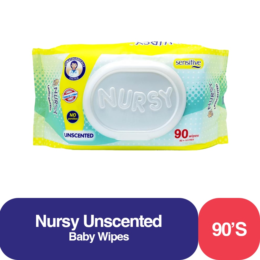 NURSY Unscented Baby Wipes are: Dermatologically- tested with the added benefit of Vitamin E, to keep baby's skin moisturized. Safe to use on baby's delicate skin because it has no paraben, methylisothiazolinon (MIT) or methychloroisothiazolinone (MCI). Thick with embossed texture to clean with one wipe