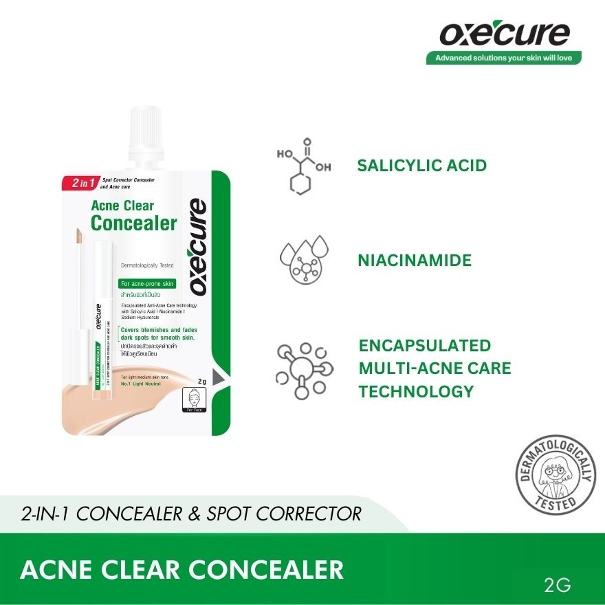 A dermatologically-tested concealer that helps cover active acne and post-acne marks while treating it! Powered with Encapsulated Multi-Acne Care Technology that gradually releases substances that treat acne, Salicylic Acid that helps kill acne-causing bacteria, and Niacinamide that reduces hyperpigmentation and redness.