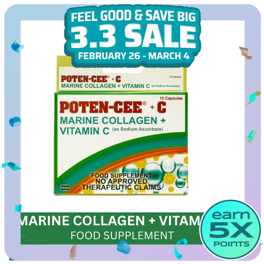> Poten-Cee + Marine Collagen is a daily supplement with Sodium ascorbate, a non-acidic form of Vitamin C and Hydrolyzed Marine Collagen sourced from fish which is rich in Types I and II Collagen. Vitamin C helps support collagen production and Marine collagen helps reduce wrinkles and improves skin hydration and firmness.