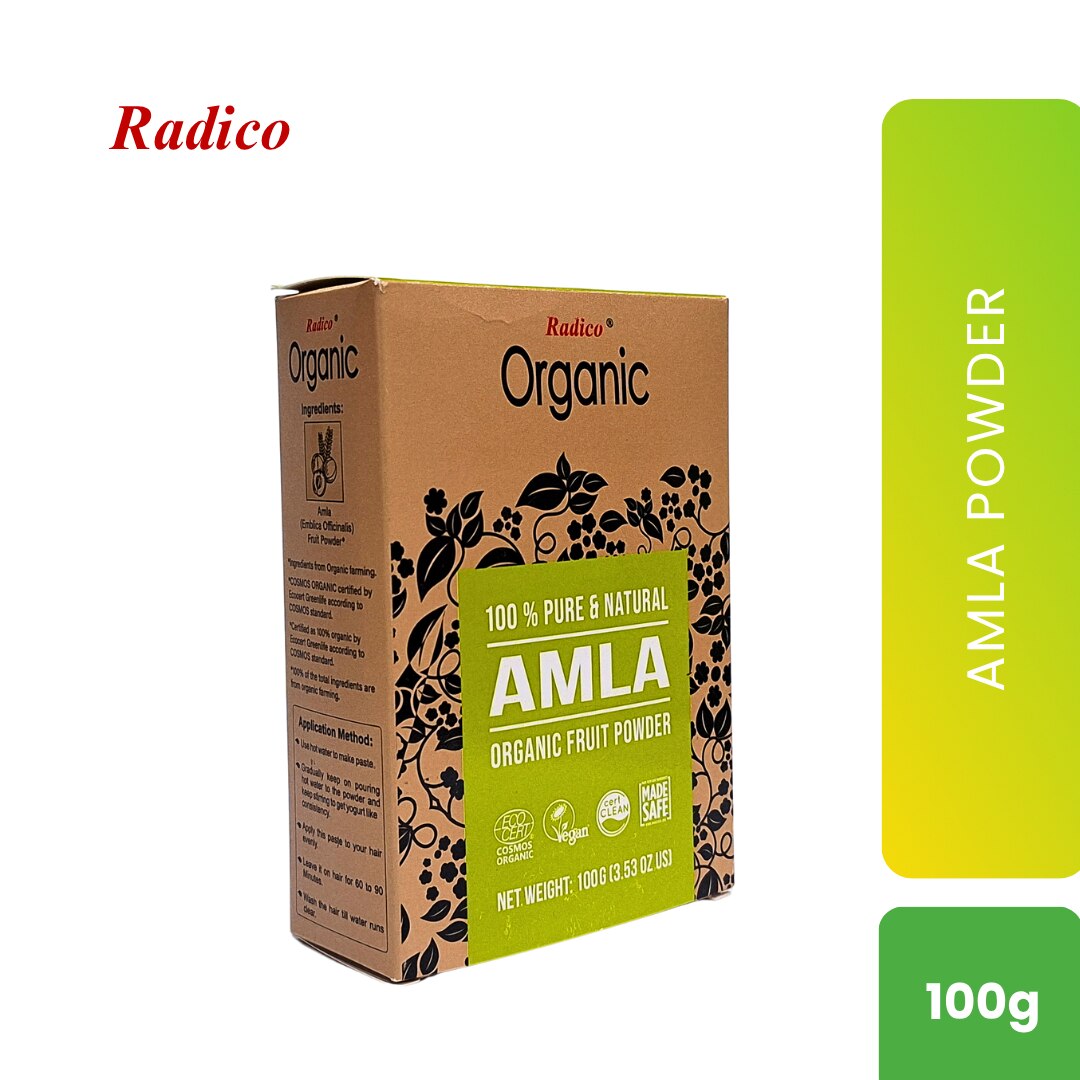 Radico Organic Amla powder is made with 100% organic Amla fruit powder. It?s an antioxidant-rich herb powder which conditions the scalp for stronger, healthier hair. Beat the signs of hair aging with Radico Organic Amla powder.