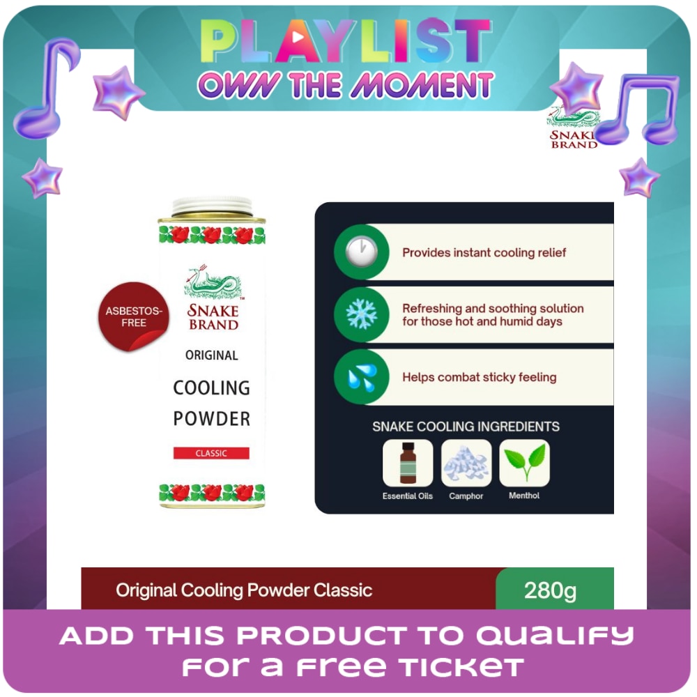 SNAKE BRAND SNAKE BRAND Prickly Heat Original Cool Snake Brand Prickly Heat Cooling Powder Classic is the original cooling and soothing powder. It contains a signature blend of natural herbs and essential oils to help refresh skin. It is suitable for daily use and is recommended to be used after bath as absorbent dusting powder.