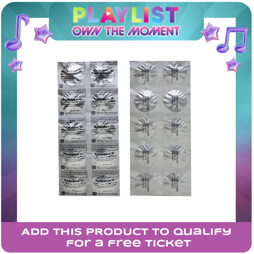 SYMDEX Paracetamol Phenylpropanolamine HCl Chlrophenamine maleate 325mg/25mg/2mg Tablets Sold Per Piece