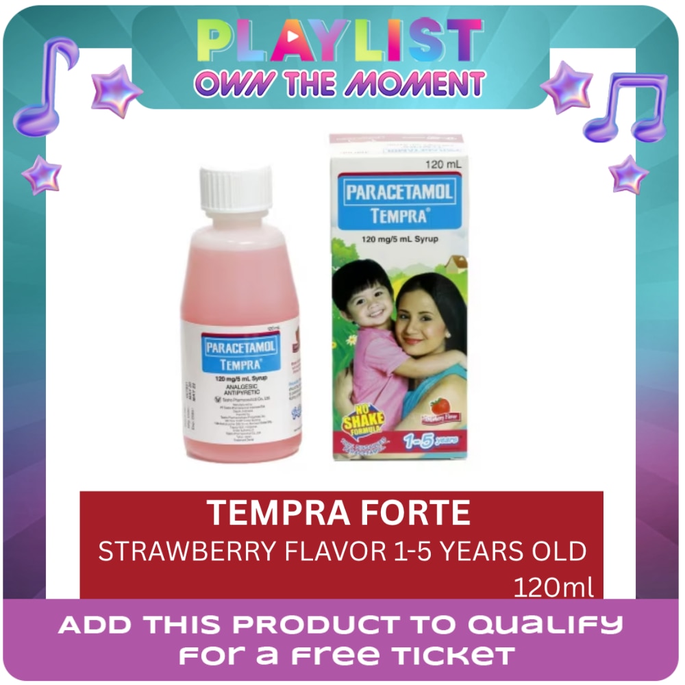 Paracetamol (Tempra) Syrup (Strawberry flavor) 120 mg/5 mL 120ml is used for reducing fever, headache, muscular aches & pain, toothache, colds, ear ache, fever due to tonsillectomy, inoculations & vaccinations. Each teaspoonful (5 mL) contains 120 mg of Paracetamol.