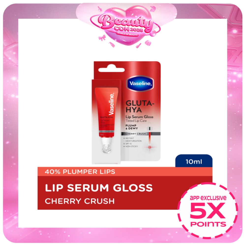 Experience the perfect blend of lip care and glamour with Vaseline Gluta-HYA Lip Serum Gloss in Cherry Crush. This innovative serum-gloss hybrid delivers more than just a pretty tint - it's your new secret weapon for plump, dewy lips that feel as good as they look. The unique formula melts effortlessly into your lips, providing instant moisture without any sticky residue. Enriched with tripeptide, hyaluronic acid, and glutaglow, this serum gloss gives your lips that coveted plump and dewy appearance while keeping them protected with SPF 15. The sheer cherry tint adds just the right pop of natural-looking color, perfect for both casual days and special occasions. Whether you're running errands or heading to a meeting, this 10ml tube slips easily into your bag, ready to give your lips that perfect balance of care and shine whenever you need it. Say goodbye to dry, dull lips and hello to soft, glossy perfection with every swipe.