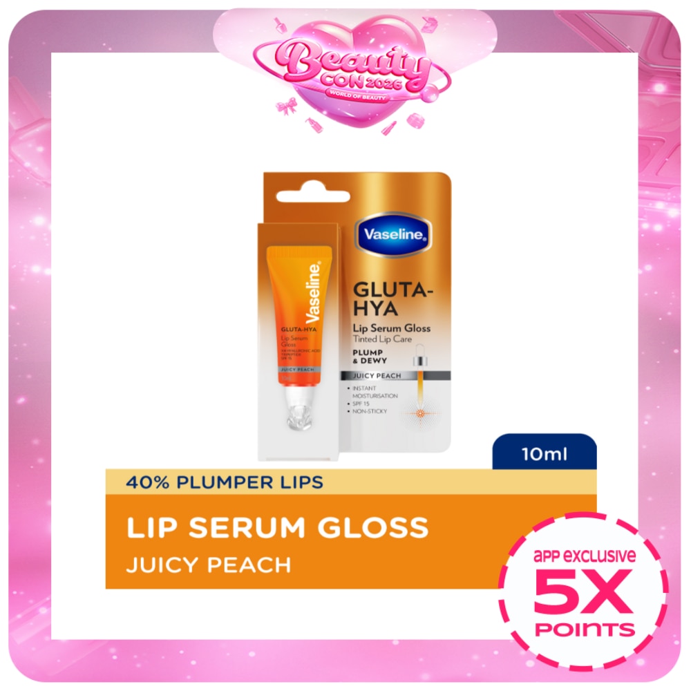 Meet your new lip obsession - Vaseline Gluta-Hya Lip Serum Gloss in Juicy Peach! This innovative 10ml lip treatment combines the best of both worlds: the nourishing care of a serum and the allure of a gloss. The luxurious formula melts effortlessly onto your lips, delivering instant hydration with a gorgeous peachy tint that enhances your natural lip color. Packed with powerful ingredients like hyaluronic acid and tripeptide, this serum gloss keeps your lips feeling plump and dewy throughout the day. What's even better? The non-sticky texture means no more hair getting caught on your lips on windy days! With added SPF 15 protection, your lips stay safe while looking absolutely irresistible. Perfect for those busy days when you want that 'just bitten' look with serious skincare benefits. Whether you're heading to work, going for coffee, or getting ready for a date night, this lip serum gloss gives you that perfect balance of care and color. Slip this sleek tube into your purse and get ready for lips that feel as good as they look!
