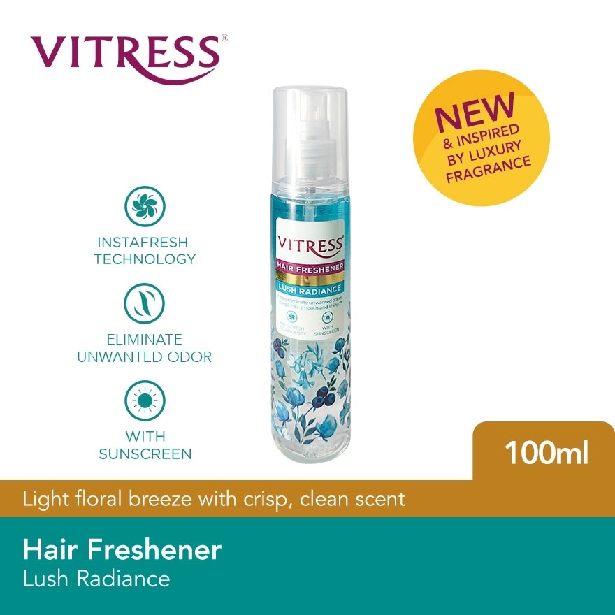 Light floral breeze with crisp, clean scent The hair struggle is real Pollution, smoke, and sweat are just some of the odors that cling to our hair everyday.But with VITRESS HAIR FRESHENER, youll never have to worry about that again. Its InstaFresh Technology instantly eliminates unwanted odors, while Anti-Bacterial Actives offer added protection from odor-causing bacteria leaving your hair with a refreshing, long-lasting fragrance and shine.