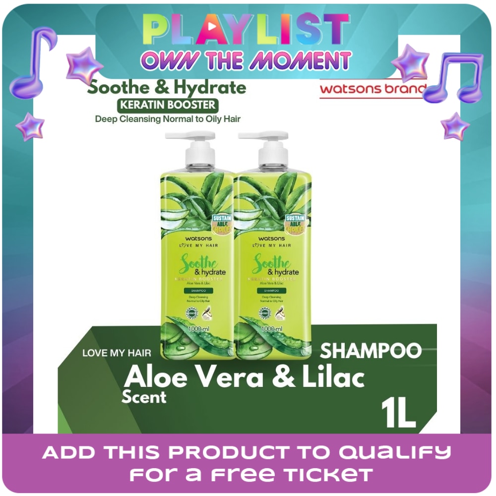Watsons Aloe Vera Lilac Soothe Hydrate Nourishing Shampoo is specially formulated for normal hair.