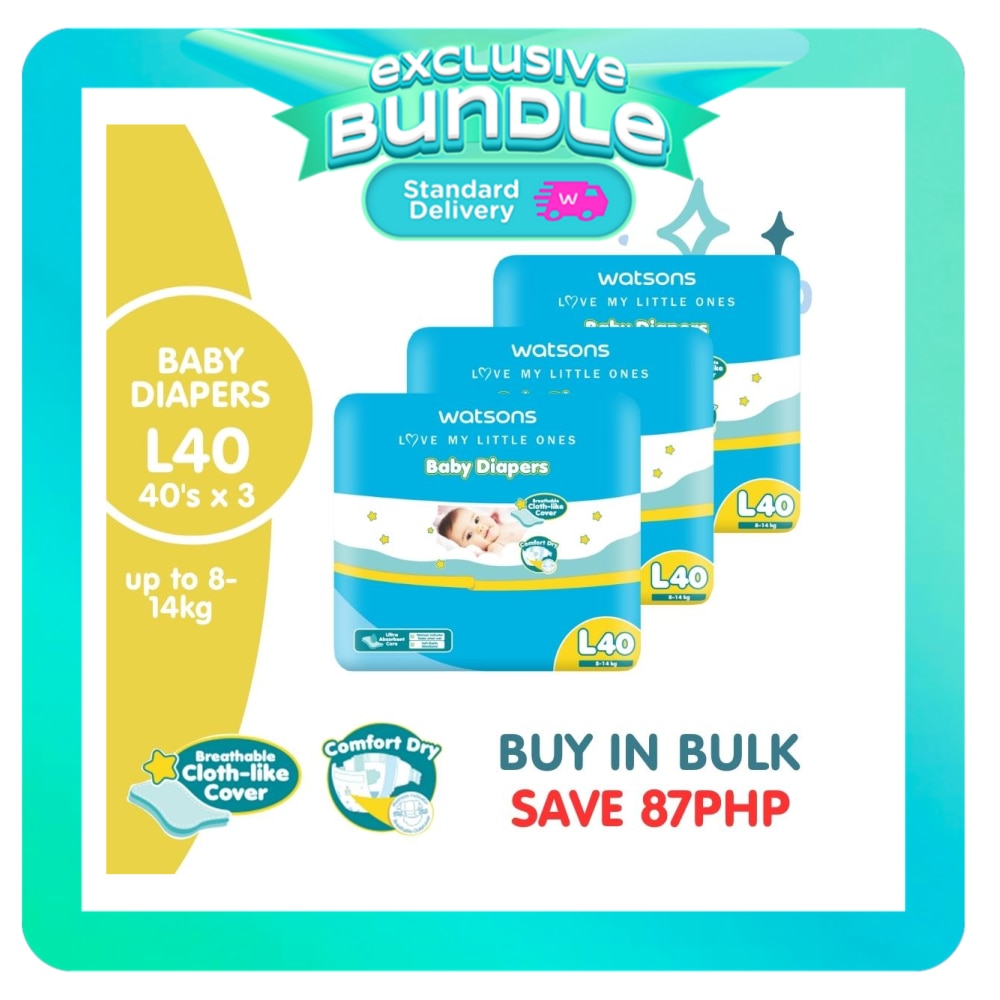 Watsons Love my little one Baby diaper Breathable cloth-like cover up to 12 hours of skin dryness" ultra absorbent core " Wetness indcator " soft elastic waistband"