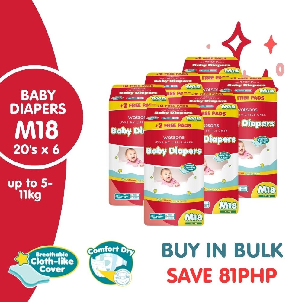 Watsons Love my little one Baby diaper Breathable cloth-like cover up to 12 hours of skin dryness" ultra absorbent core " Wetness indcator " soft elastic waistband"