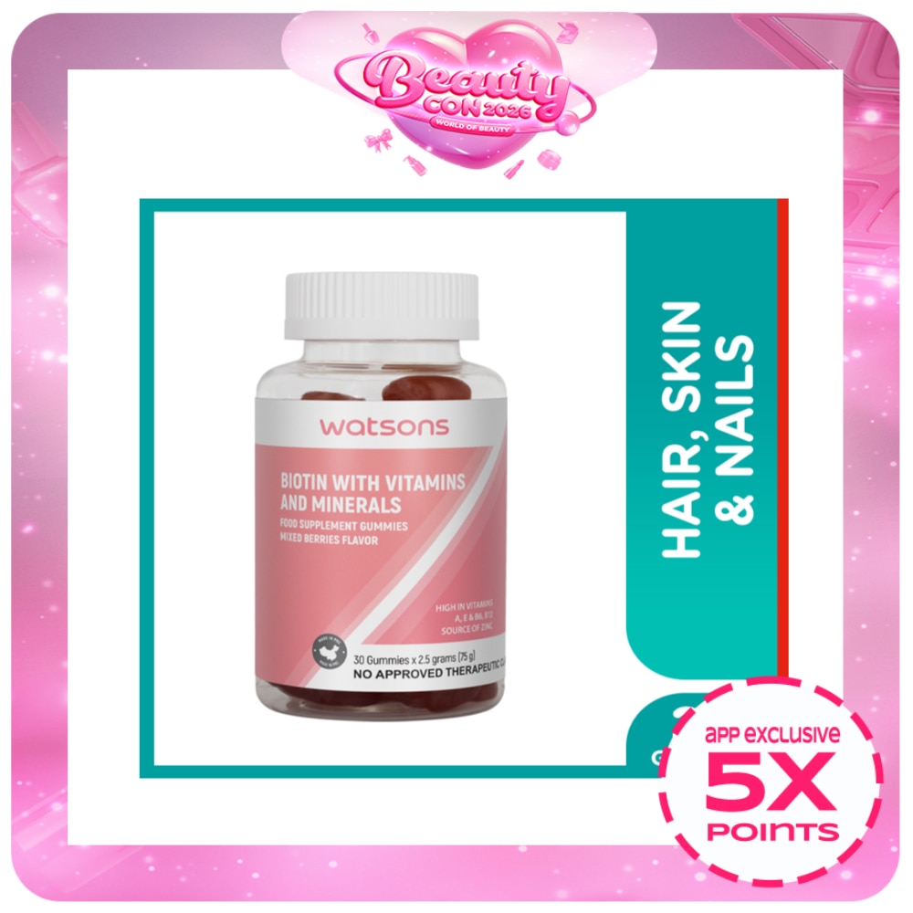 WATSONS Biotin with Vitamins and Minerals Mix Berries 30s Gummies x 2.5g