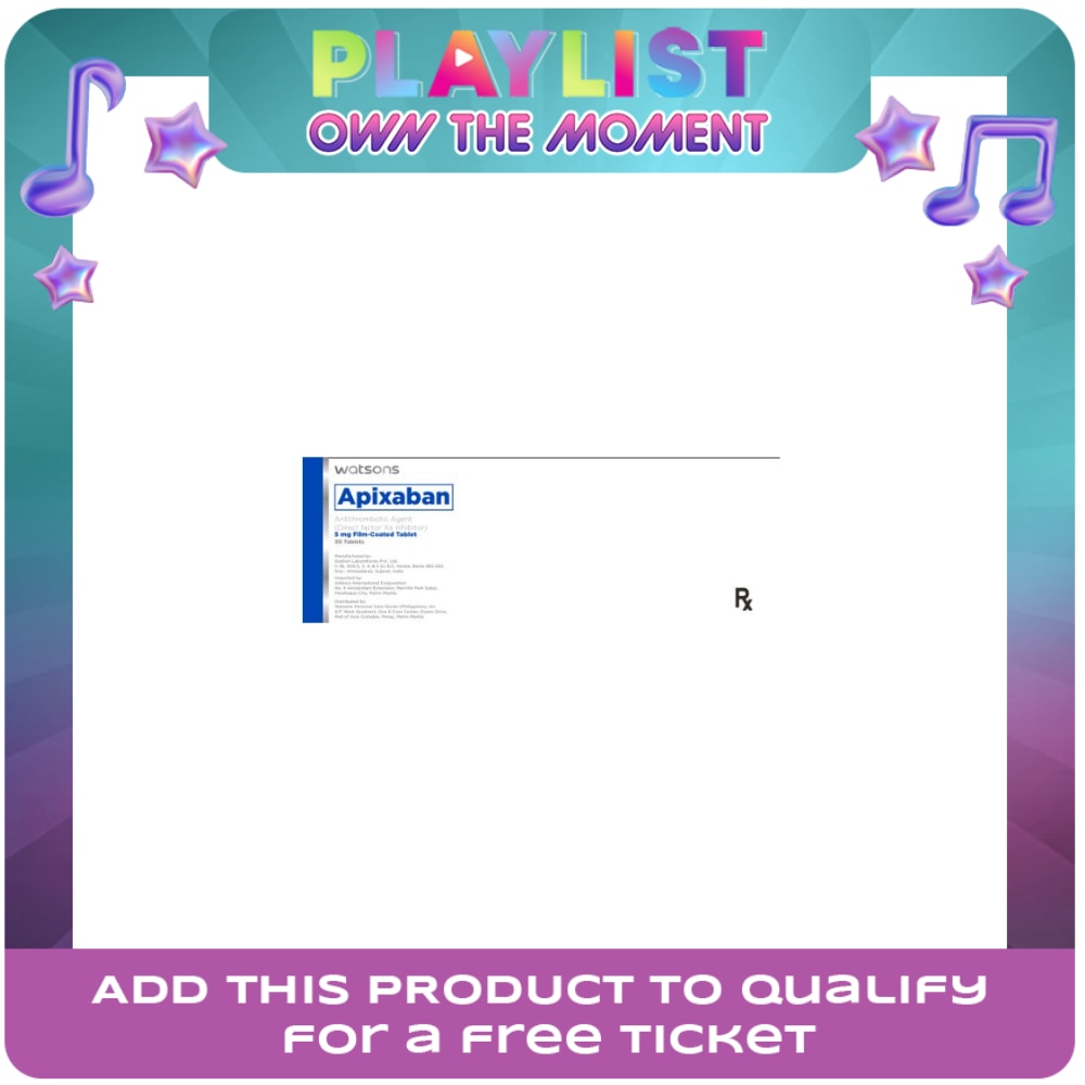 ![WATSONS GENERICS Apixaban 5mg 1 Film-Coated Tablet (Expiry: June 30, 2027) [PRESCRIPTION REQUIRED]](https://medias.watsons.com.ph/publishing/WTCPH-50049718-back-zoom.jpg?version=1726591808)