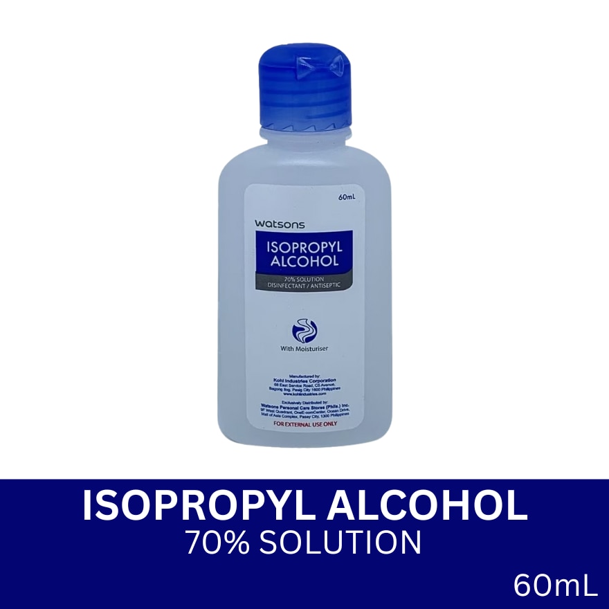 Watsons Alcohol has 70% Isopropyl Solution. This can be used as disinfectant and antiseptic. It has a non-drying formula to moisturize and keep skin soft.