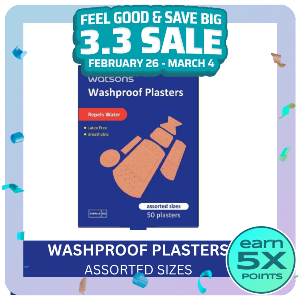 Watsons Washproof Plasters are sterilized ventilated and water resistant to allow the wound to breath and help the natural healing process. They are latex free and suitable for sensitive skin.
