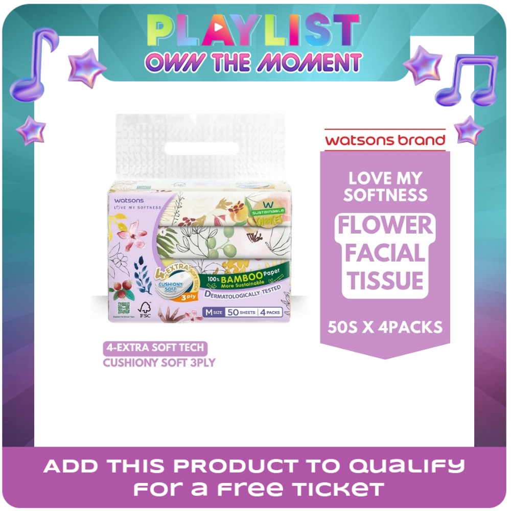 Watsons X Flower Travel Tissue 3ply 50 sheets 4 packs